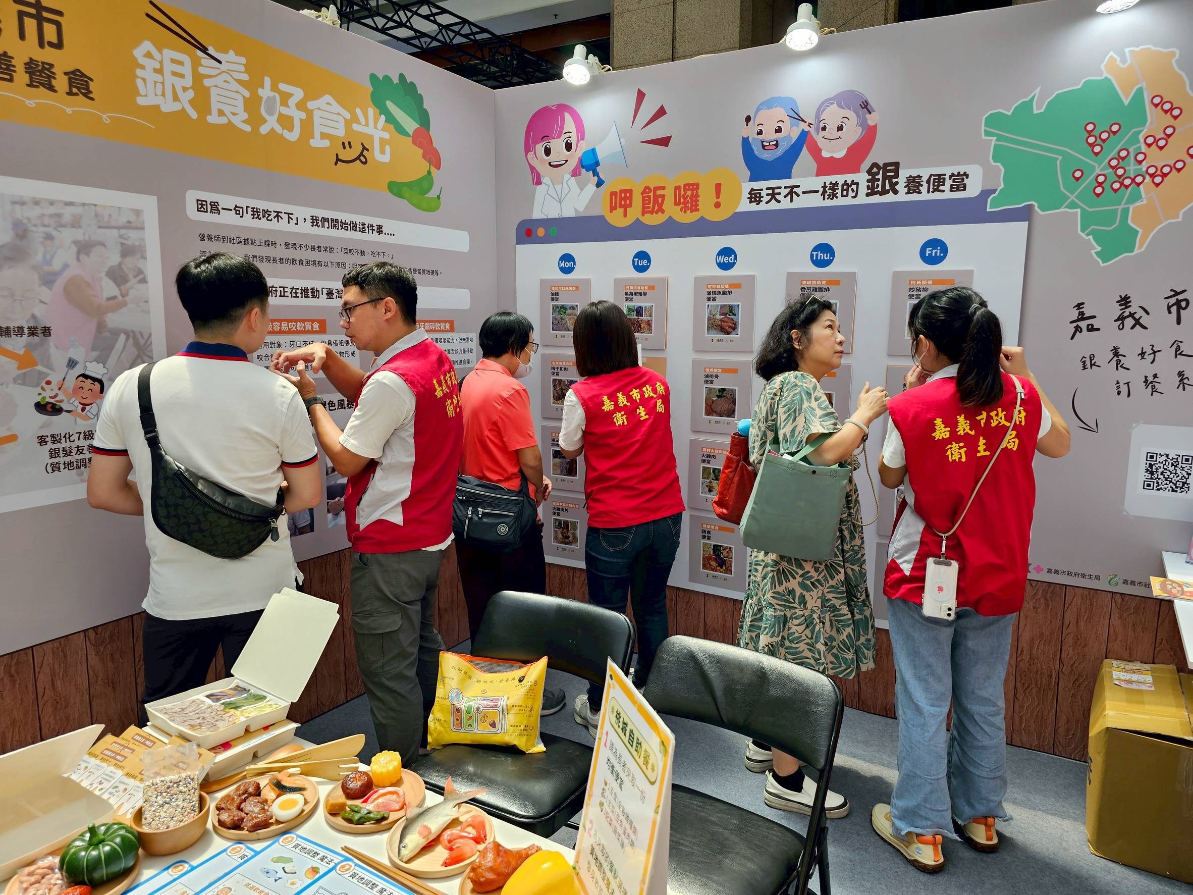 嘉義市社區營養推廣中心於8月8日至10日前進台北,參加第二屆高齡健康產業博覽會,展示創新的「銀養好食光」專案成果,分享該專案從實務觀察發想、進而轉化為高齡友善餐飲服務模式的歷程。現場展示實體軟質餐盒、訂餐平台操作流程及食材處理互動遊戲,邀請全國一同見證嘉義市創新的實踐力。