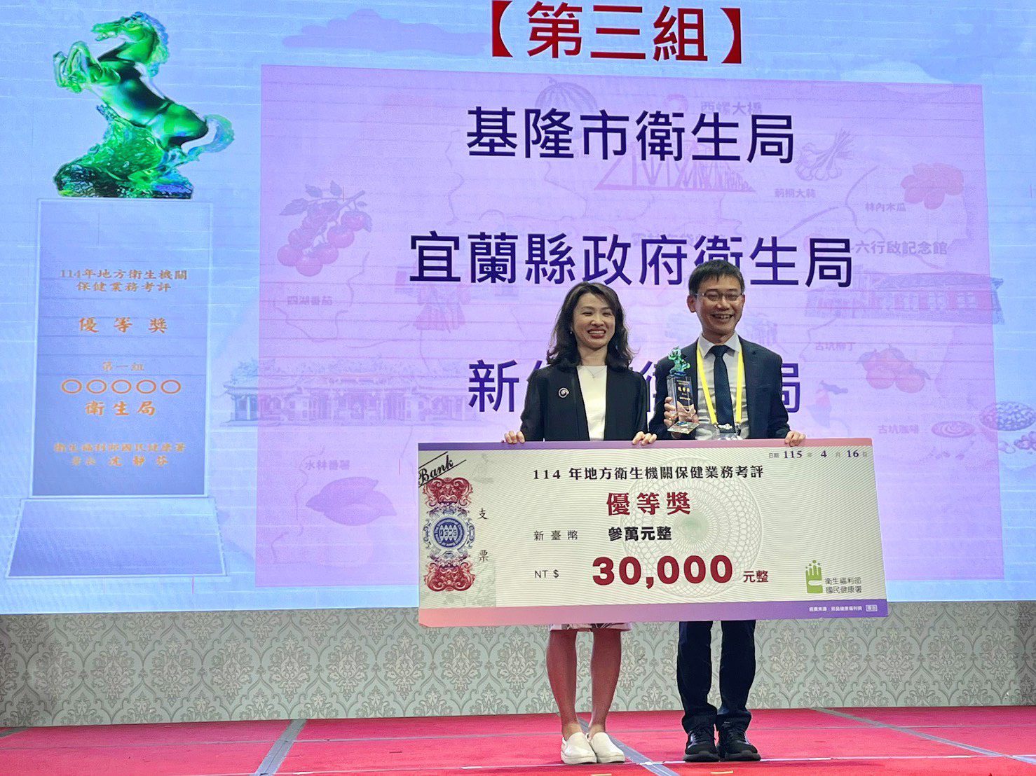 基隆市衛生局在全國保健業務考評中拿下第三組優等獎。
